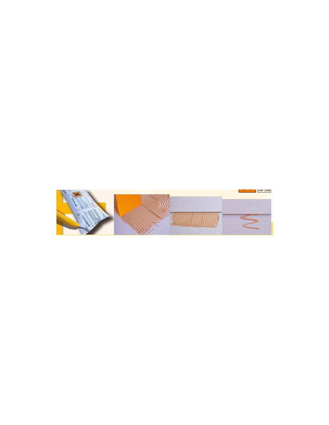 La cantidad de adhesivo a aplicar depende del tipo de materiales a unir, y la media está entre 1 a 1,8 kg/m2.- El tiempo de fraguado del adhesivo depende del tipo de materiales a unir, del tipo de superficie y también de la cantidad de adhesivo empleado. A temperatura de 20°C el adhesivo estará listo en 12 horas. Embalaje y almacenamiento- El adhesivo se suministra en tubos plásticos. El peso es de 1000 gramos.- La caducidad es de al menos 6 meses, el adhesivo se debe almacenar entre temperaturas de +5°C y 25°C. Nota: el adhesivo puede irritar la piel. Evitar todo contacto con los ojos. Cuando una parte del adhesivo tome contacto con los ojos, limpiarlos rápidamente con abundante agua corriente y visitar el médico. Emplee ropa de protección adecuada, guantes y gafas.